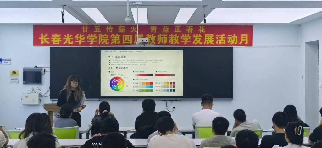 赵家老师以“方寸之间的艺术——高校青年教师教学PPT制作方法”为主题,从形式、版面、图形图像、文字、色彩搭配和动画与交互这六个方面讲授PPT的制作技巧,其内容兼具实用性与审美性。赵老师还对PPT的优质教程、实用网站、资源等素材进行了分享,强调PPT不仅能提升教师的审美水平和工作效率,更重要的是帮助学生构建完整知识体系,希望新入职教师们重视PPT的学习与制作,在教学工作中不断进步。