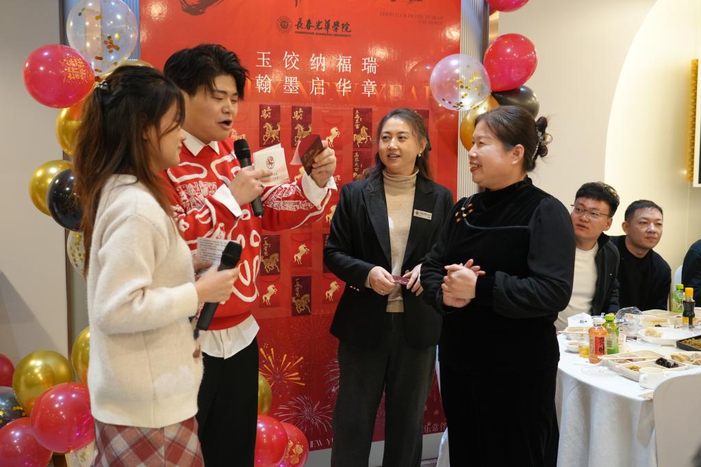 夜幕降临,热气腾腾的饺子陆续上桌,现场暖意更浓。来自维吾尔族、蒙古族、朝鲜族、东乡族、锡伯族等多个民族的学生代表轮番登场,分享家乡的新年习俗与特色美食,更有蒙古族的学生为在场老师们献上寄托着最美好祝愿的哈达,师生们围坐一桌,共品多元风味饺子与各民族特色佳肴,深切感受多民族交融共处的深厚情谊。活动尾声,现场颁发了 “创意饺子”“协作能手” 等特色奖项,幸运抽奖环节更是将氛围推向高潮,欢声笑语中,本次迎新年活动画上圆满句号。