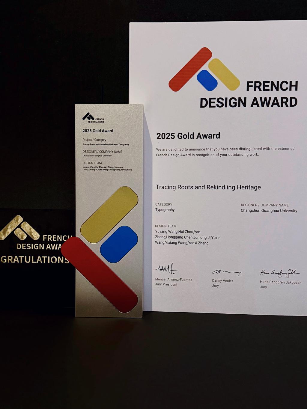长春光华学院艺术设计学院王雨阳副研究员凭借原创设计作品在全球众多参赛作品中脱颖而出,荣获2025年度法国设计奖(French Design Award)金奖,并受邀赴法国巴黎出席官方颁奖典礼。此次获奖是我校设计科研成果首次摘得该国际顶级赛事最高奖项,实现了国际设计奖项的历史性突破。